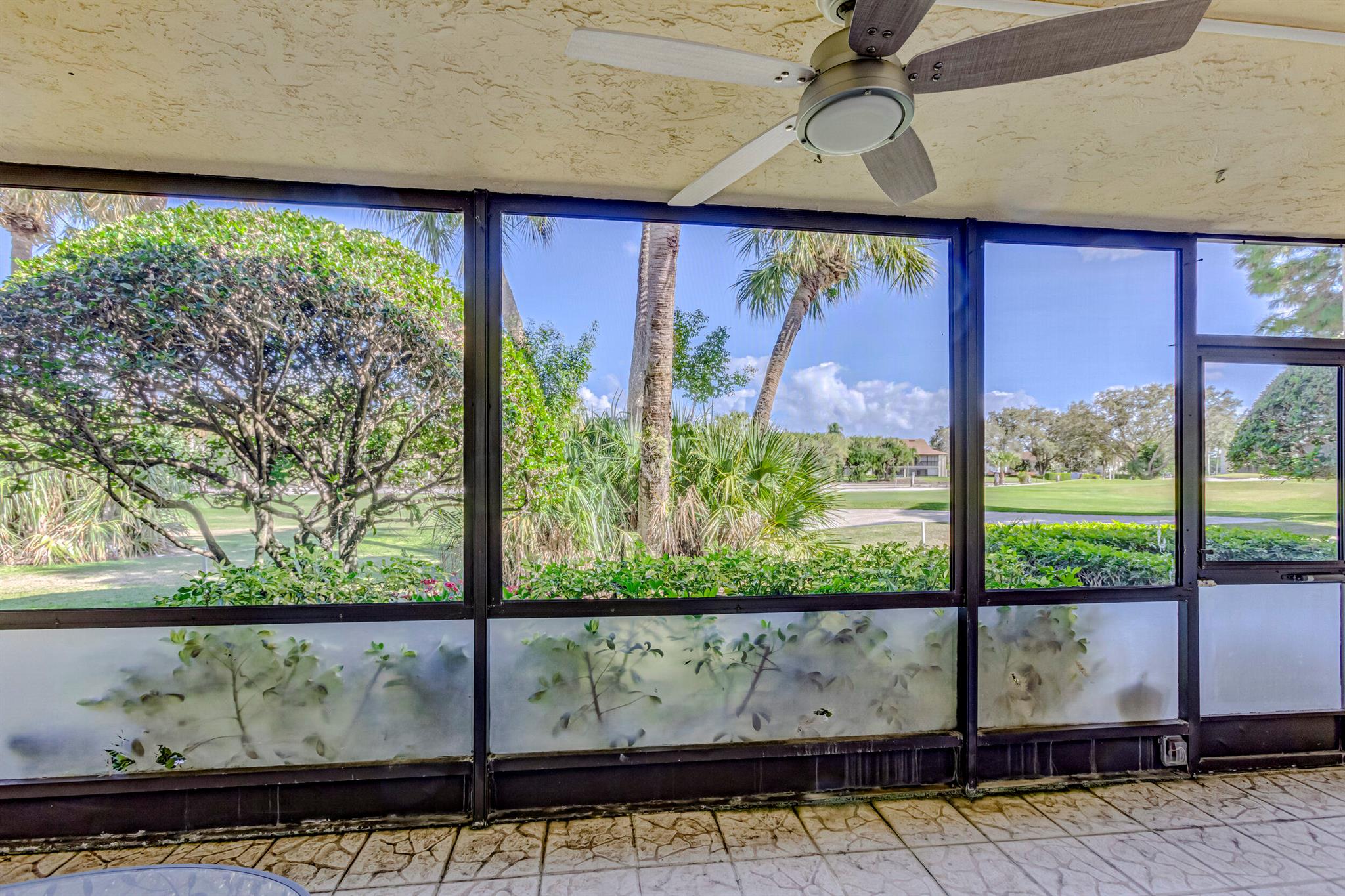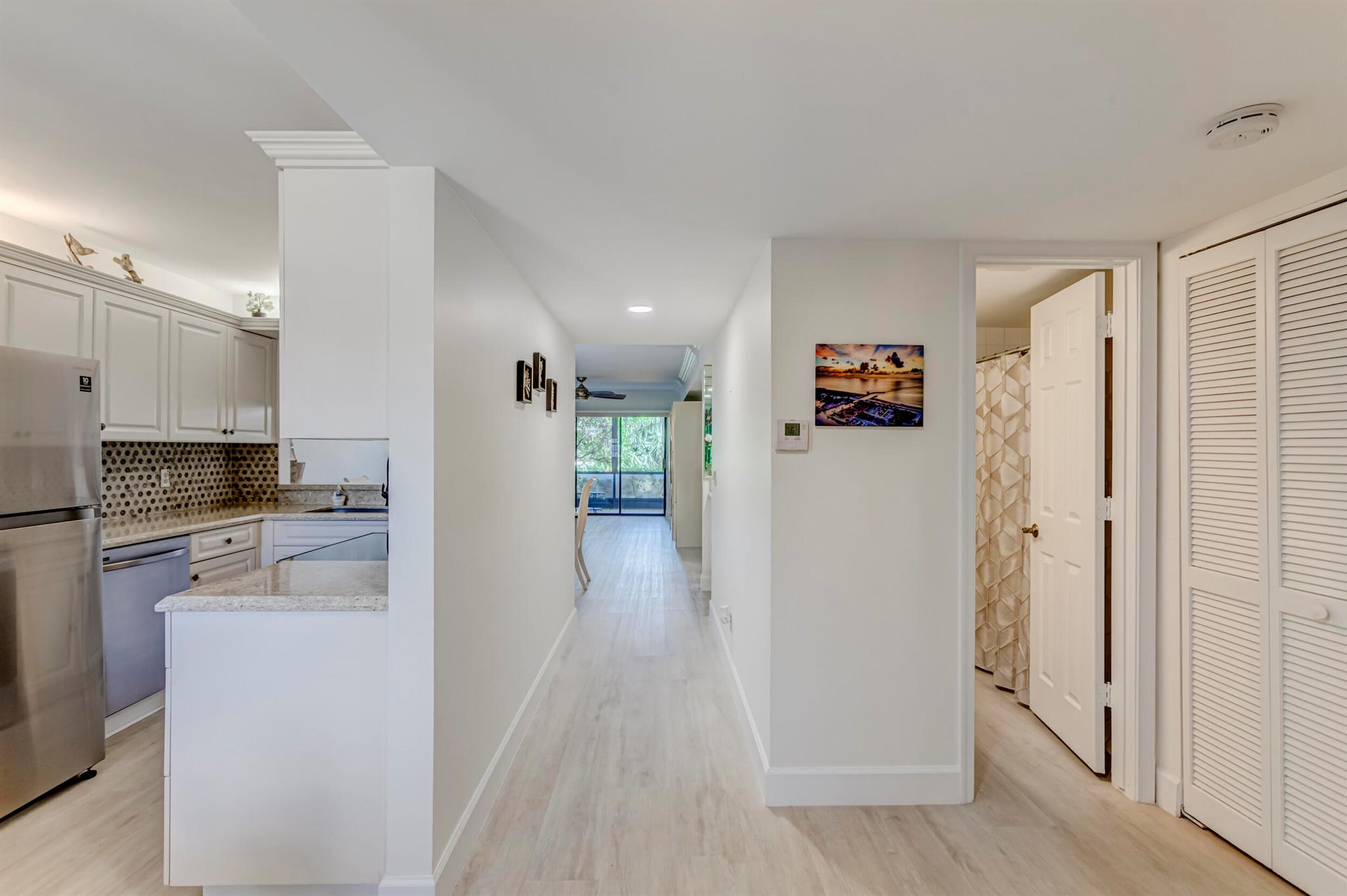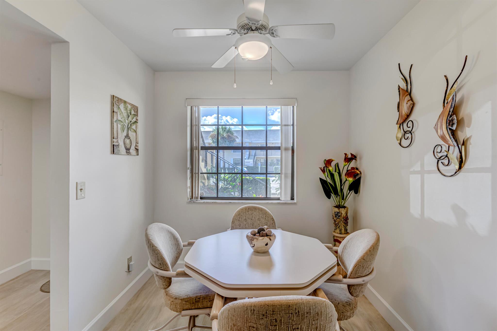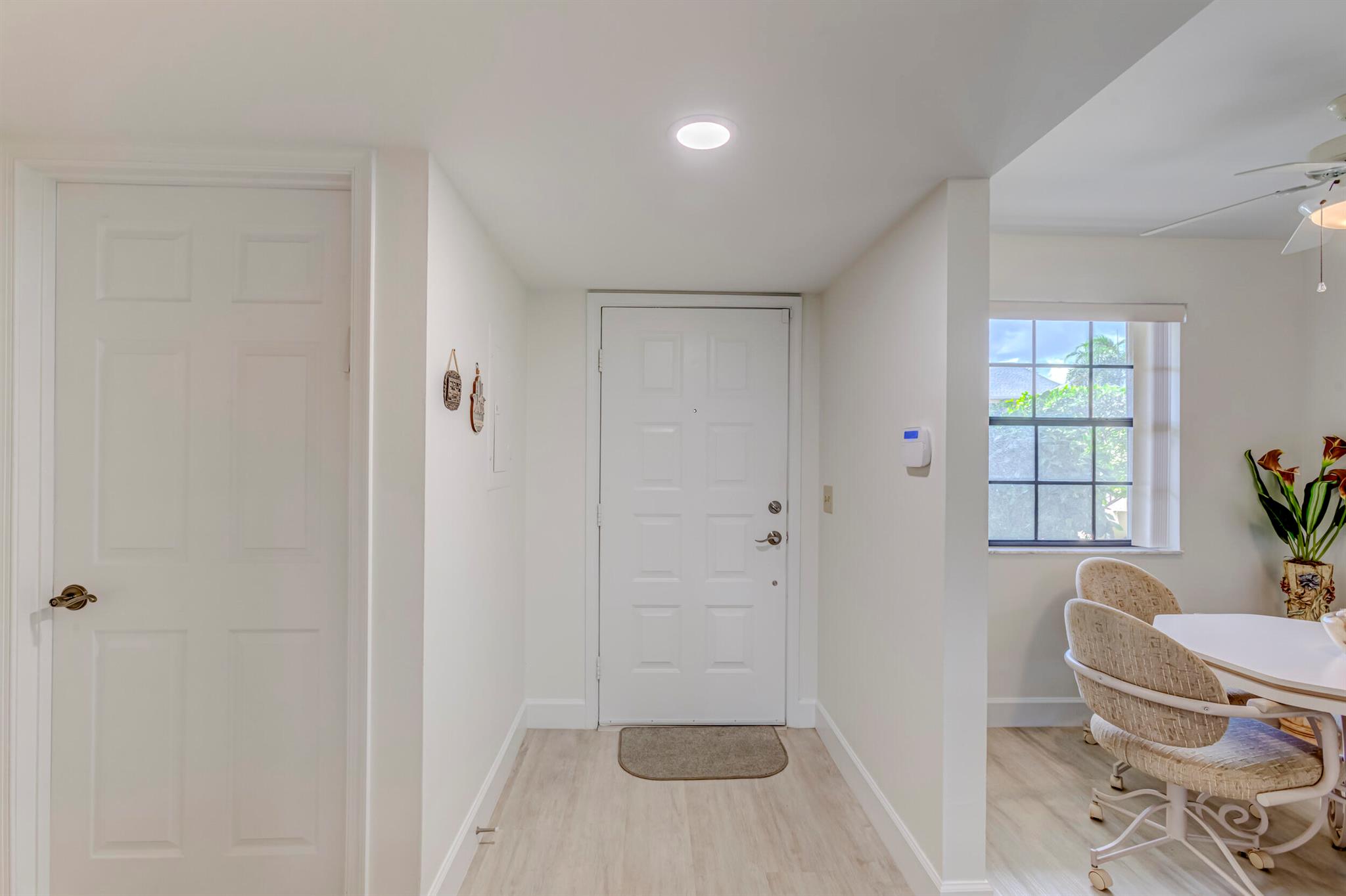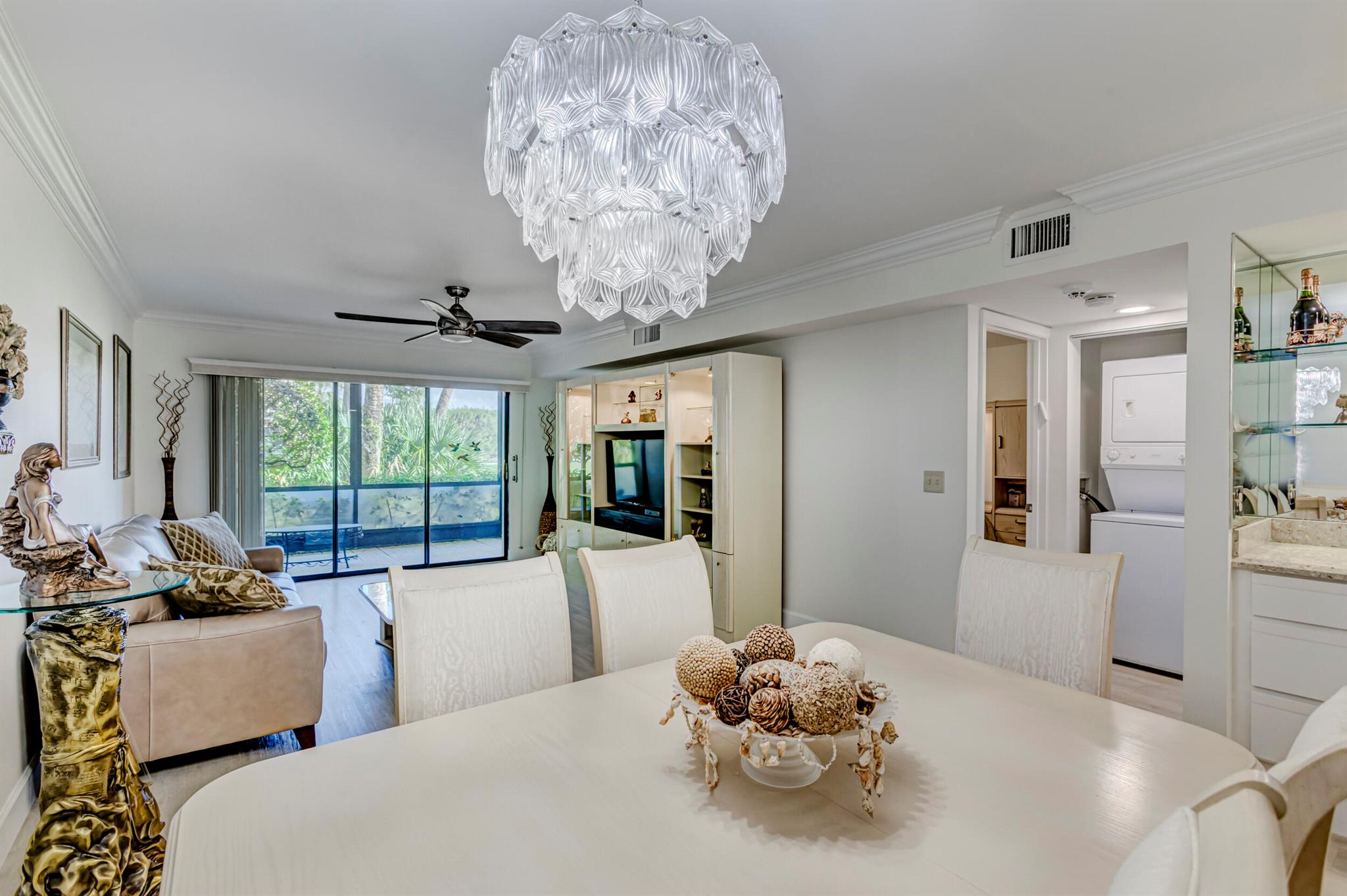 Great location!!!! This updated two bedroom two bath first floor unit facing the golf course has appliances only two years, luxury vinyl floors throughout, security system and accordion shutters. The kitchen has a breakfast area, as well as Quartz counters and stainless steel appliances. The guest bedroom comes with a Murphy bed has a walk-in closet. The master bedroom has a slider to the patio, walk-in closet and the bathroom has been remodeled. Keystone has a community center and swimming pool. The golf course is public and has a restaurant just half a mile away. This location is close to the beach 95 and lots of shopping. Enjoy Jupiter at its best. HOA fees of $492 a month that includes cable and exterior insurance. The first year cannot be rented.
