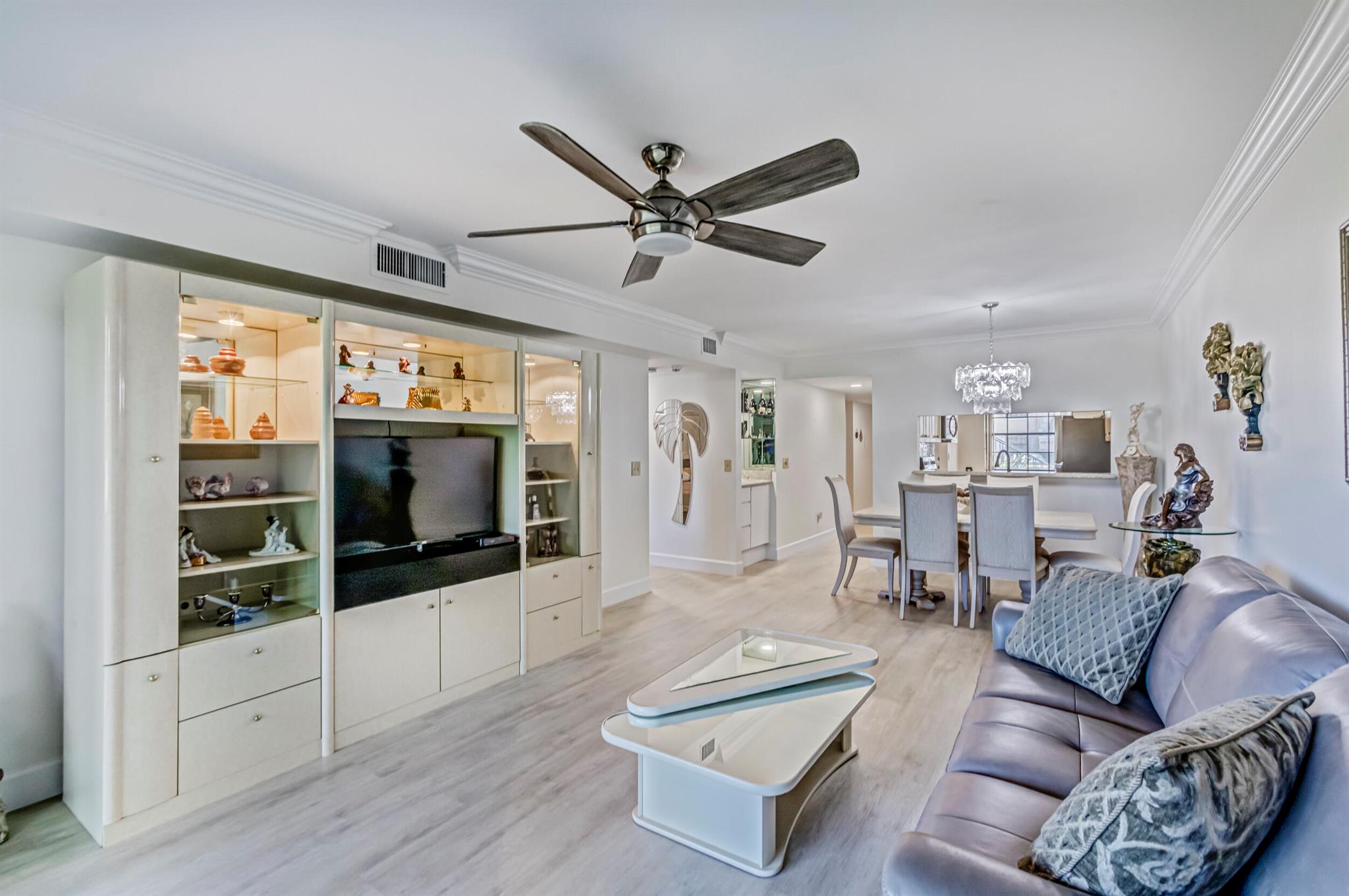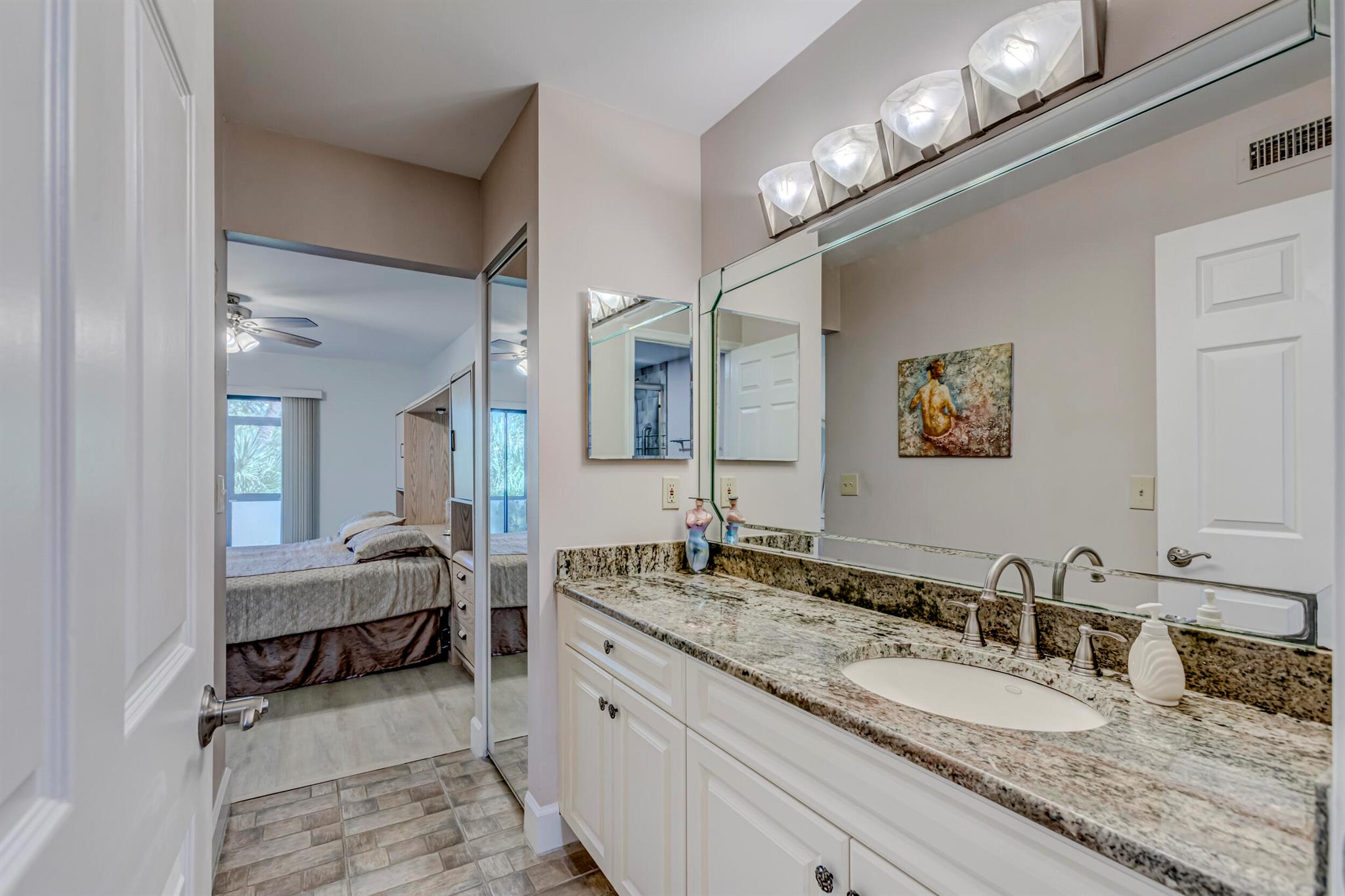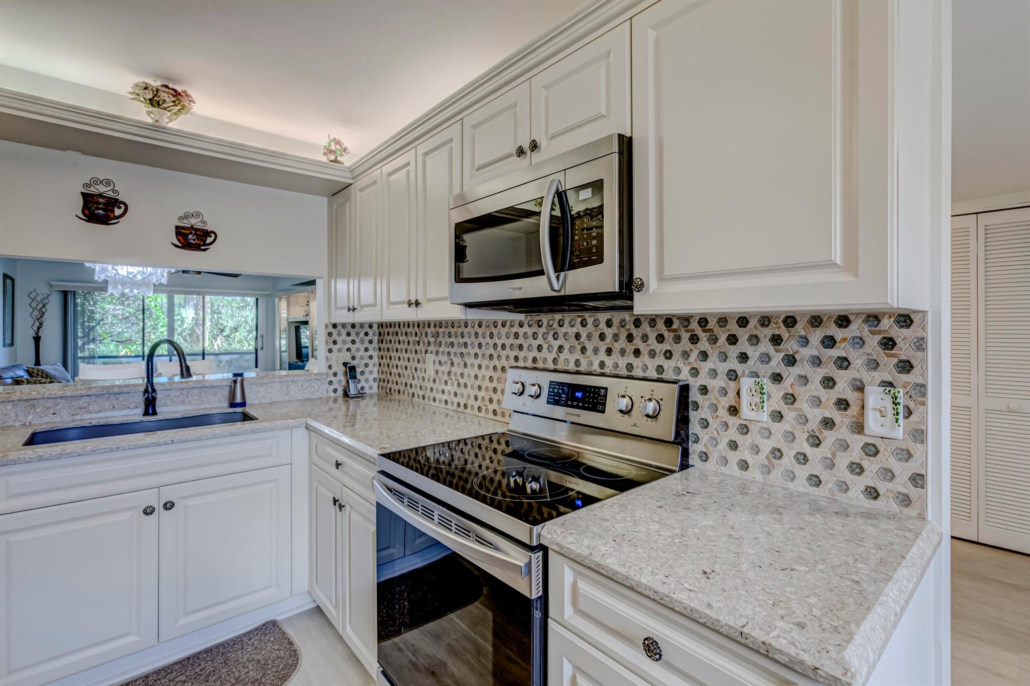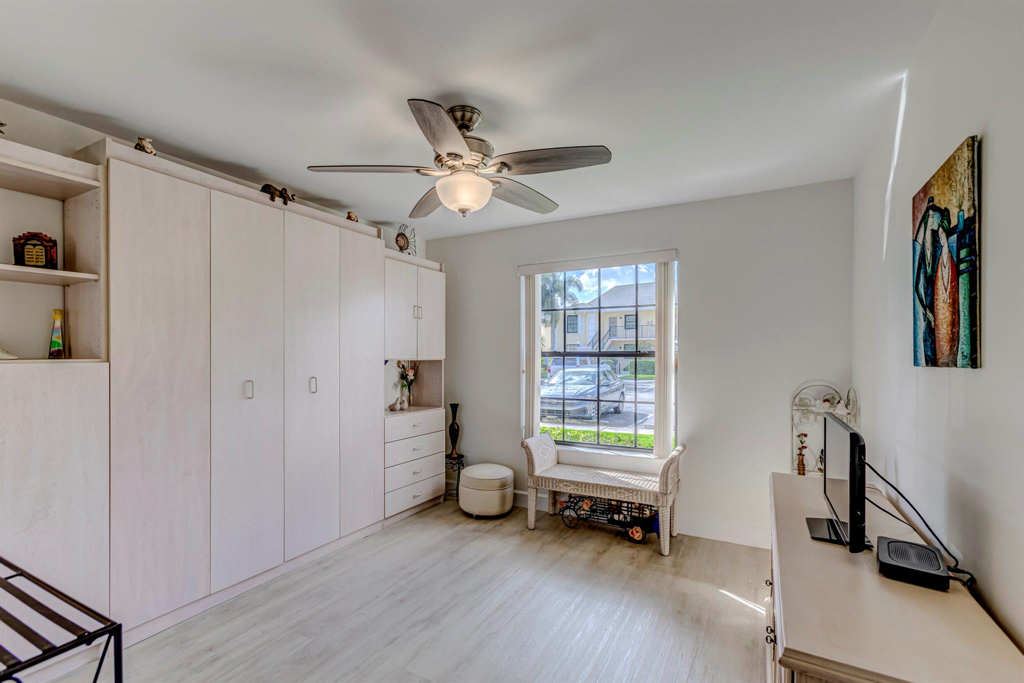 Great location!!!! This updated two bedroom two bath first floor unit facing the golf course has appliances only two years, luxury vinyl floors throughout, security system and accordion shutters. The kitchen has a breakfast area, as well as Quartz counters and stainless steel appliances. The guest bedroom comes with a Murphy bed has a walk-in closet. The master bedroom has a slider to the patio, walk-in closet and the bathroom has been remodeled. Keystone has a community center and swimming pool. The golf course is public and has a restaurant just half a mile away. This location is close to the beach 95 and lots of shopping. Enjoy Jupiter at its best. HOA fees of $492 a month that includes cable and exterior insurance. The first year cannot be rented.