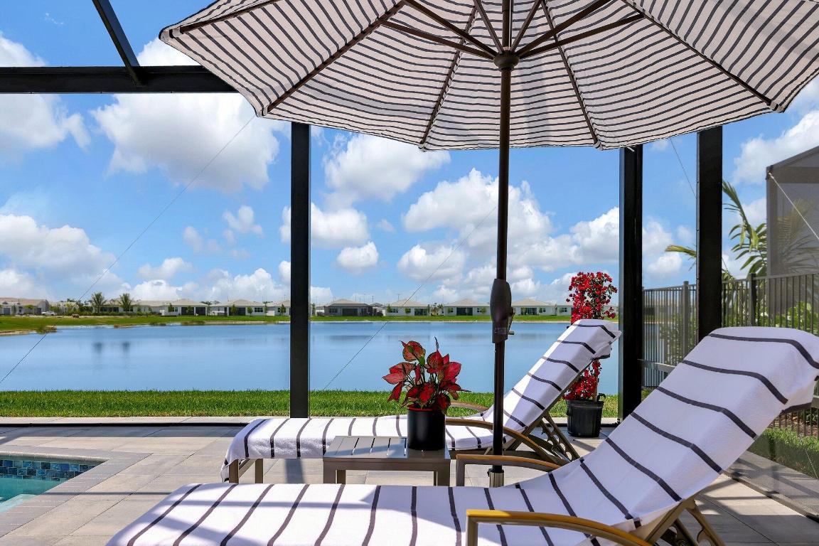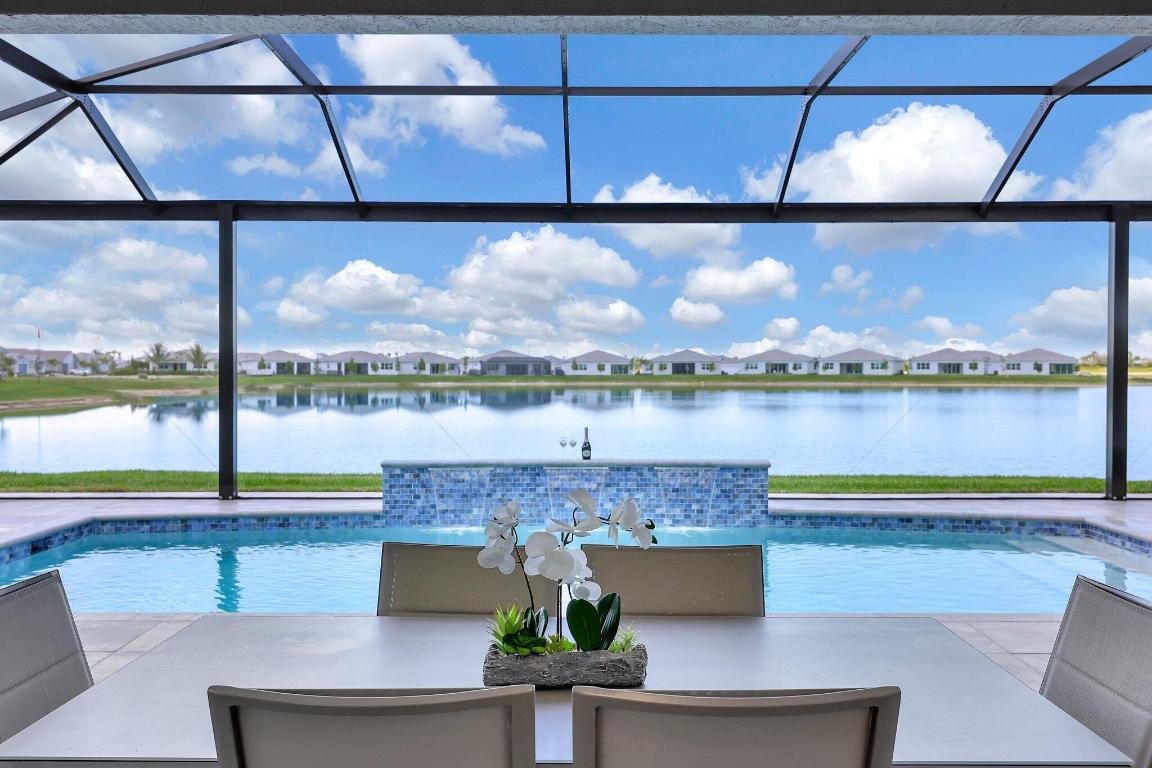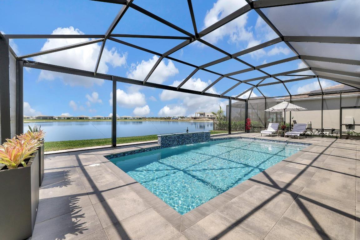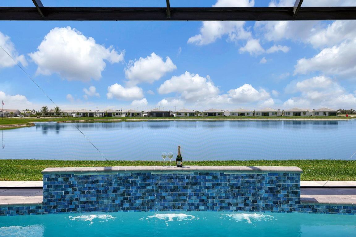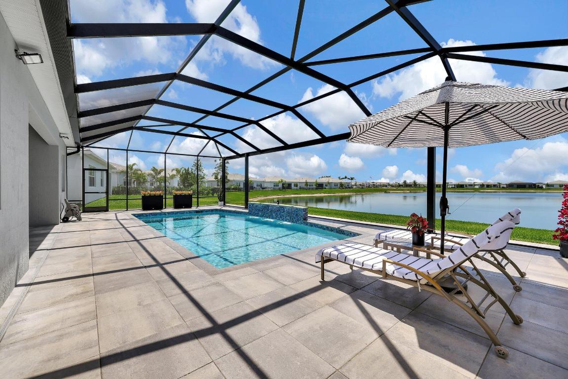 Stunning Estate Home Boast Lake Views With Spectacular Sunsets...VIEW, VIEW, VIEW!! - Walking distance to Luxury 55 Lifestyle Club House opening soon. (Temp Amenities Open Now) Home Features 3 Bed/ 3 Bath/Flex Room/3 Car Gar. Custom Upgraded shelves in pantry and closets, Gourmet Kitchen with High-end Bosch refrigerator, dishwasher, quartz countertops and backsplash, oversized island, open-concept dining room/ living area, Designer style Porcelain floors and accent walls. Modern Form specialty lighting, fans, designer shades, and window treatments, Outdoor Oasis Covered lanai, custom heated and chilled salt pool, with picture screen closure, soothing waterfall, ultimate in luxury! Telaro -gated entry, pool, cafe' card clubs, golf clubs, cooking clubs, pickle-ball, tennis and more! Telaro HOA includes so much to make your 55 Active Lifestyle easy. Included are GATED ENTRY, ALARM, CABLE, INTERNET, FULL LAWN CARE AND FULL ACCESS TO RESORT CLUB HOUSE. Telaro at Traditions is setting the bar high for Port St Lucie with midsize, man-gated 55 Resort Luxury Active Adult Community with a Activities Director on site and brand new club house opening soon, with many clubs and events already on schedule with temporary club house operating now. The high end Amenities include Tennis, Pickle-ball, Specialty Fitness Center, Assortment of Fitness Classes, Water Fitness Classes, Cooking Classes, Gardening, Cards, Golf Clubs, Dance Clubs, Wine Clubs, Travel Clubs and much, much more...