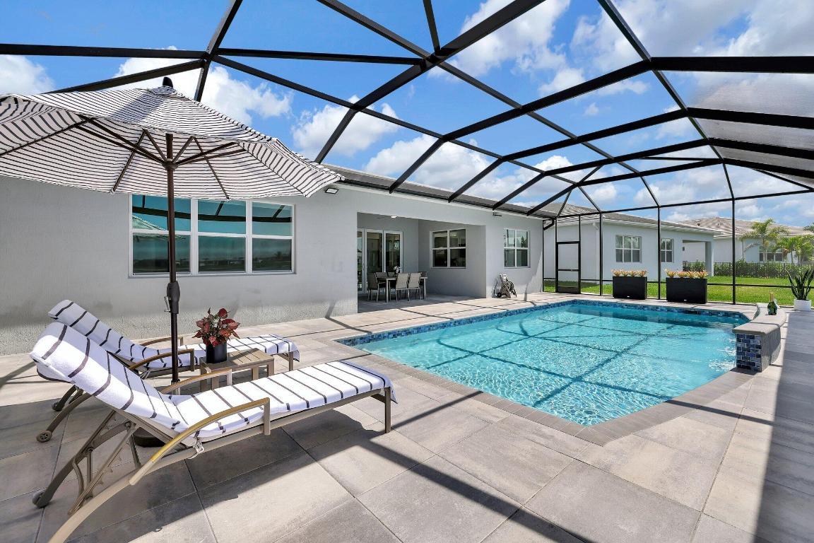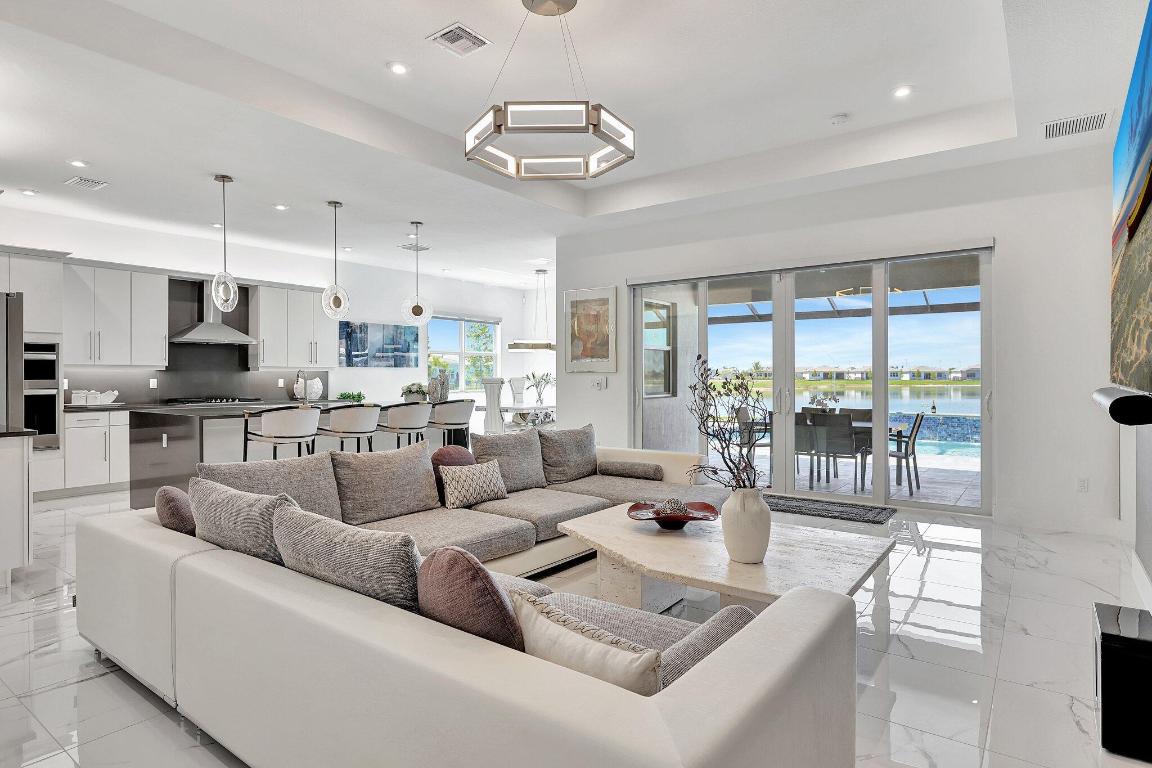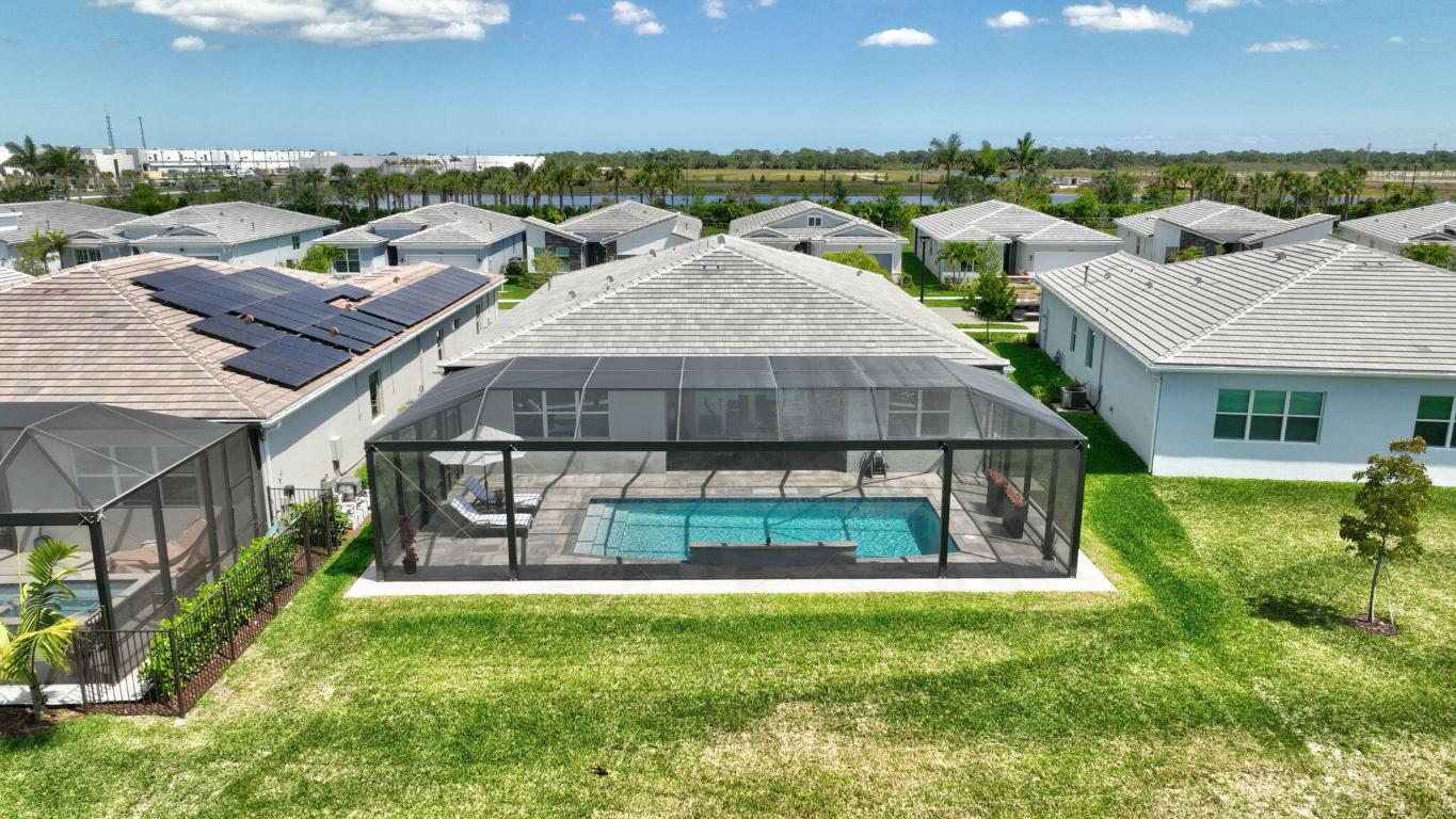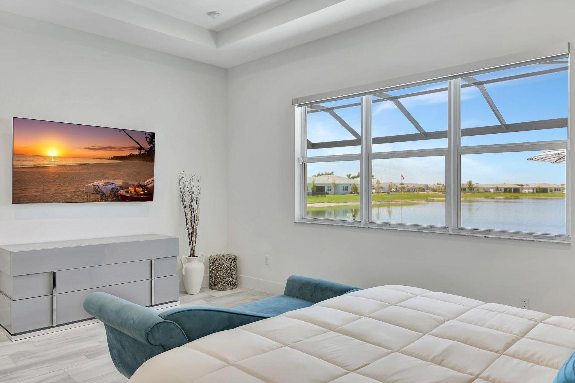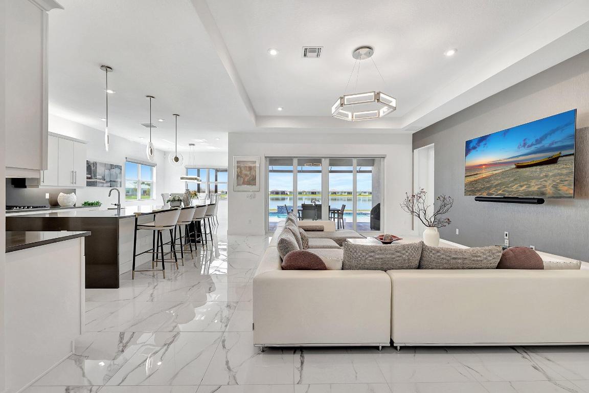 Stunning Estate Home Boast Lake Views With Spectacular Sunsets...VIEW, VIEW, VIEW!! - Walking distance to Luxury 55 Lifestyle Club House opening soon. (Temp Amenities Open Now) Home Features 3 Bed/ 3 Bath/Flex Room/3 Car Gar. Custom Upgraded shelves in pantry and closets, Gourmet Kitchen with High-end Bosch refrigerator, dishwasher, quartz countertops and backsplash, oversized island, open-concept dining room/ living area, Designer style Porcelain floors and accent walls. Modern Form specialty lighting, fans, designer shades, and window treatments, Outdoor Oasis Covered lanai, custom heated and chilled salt pool, with picture screen closure, soothing waterfall, ultimate in luxury! Telaro -gated entry, pool, cafe' card clubs, golf clubs, cooking clubs, pickle-ball, tennis and more! Telaro HOA includes so much to make your 55 Active Lifestyle easy. Included are GATED ENTRY, ALARM, CABLE, INTERNET, FULL LAWN CARE AND FULL ACCESS TO RESORT CLUB HOUSE. Telaro at Traditions is setting the bar high for Port St Lucie with midsize, man-gated 55 Resort Luxury Active Adult Community with a Activities Director on site and brand new club house opening soon, with many clubs and events already on schedule with temporary club house operating now. The high end Amenities include Tennis, Pickle-ball, Specialty Fitness Center, Assortment of Fitness Classes, Water Fitness Classes, Cooking Classes, Gardening, Cards, Golf Clubs, Dance Clubs, Wine Clubs, Travel Clubs and much, much more...