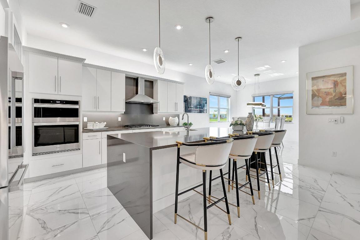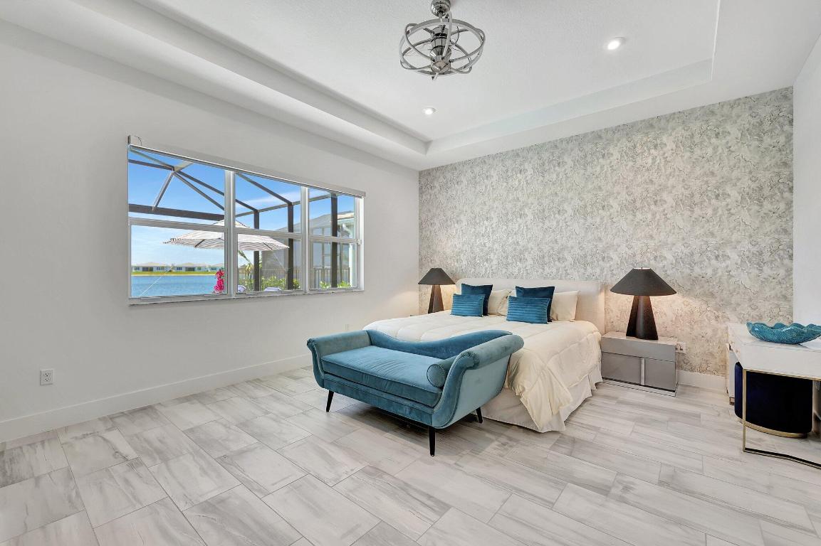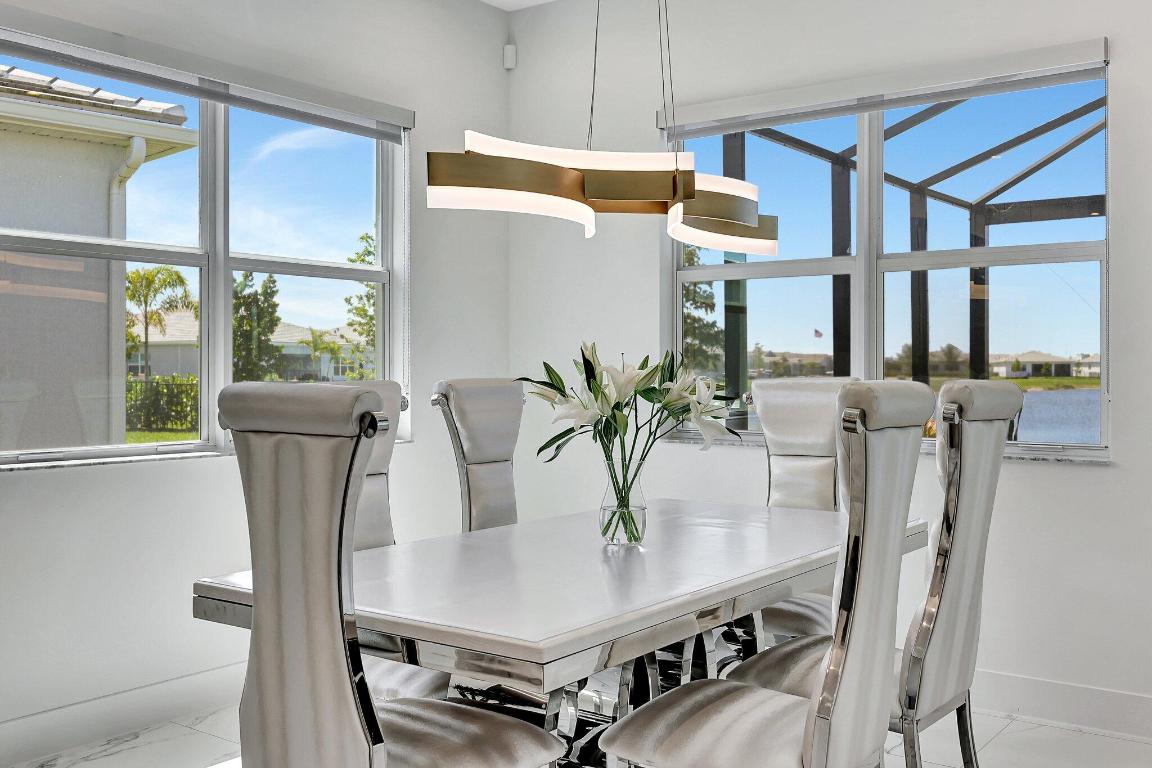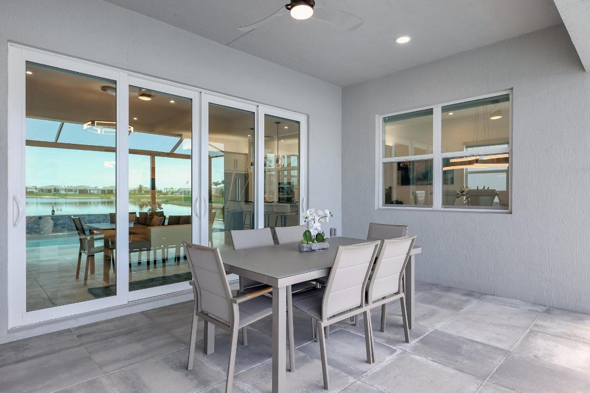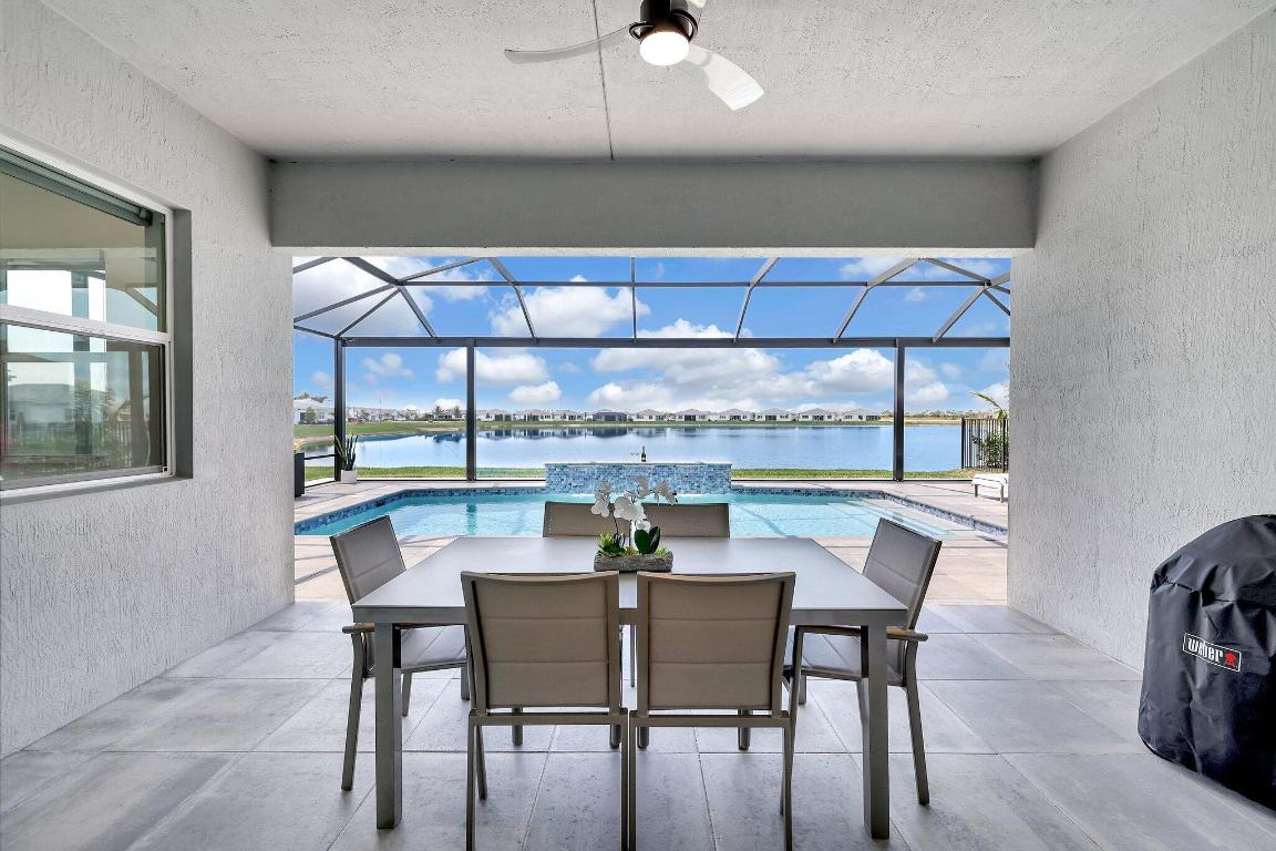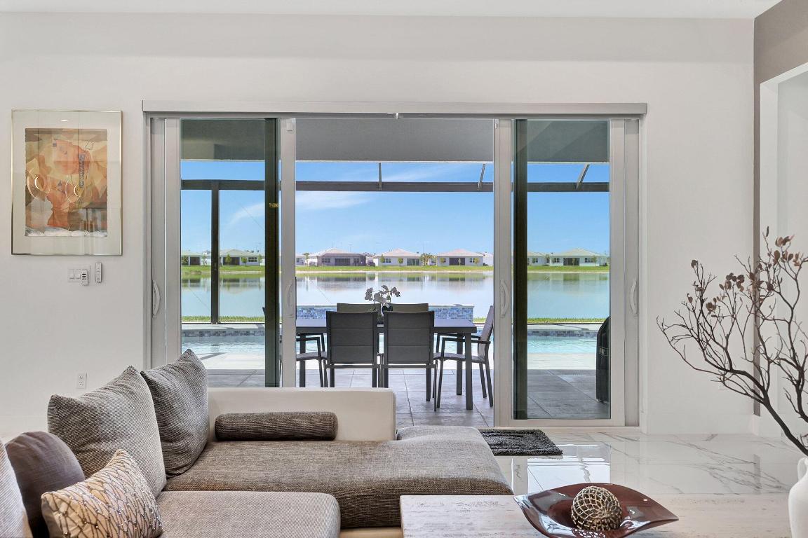 Stunning Estate Home Boast Lake Views With Spectacular Sunsets...VIEW, VIEW, VIEW!! - Walking distance to Luxury 55 Lifestyle Club House opening soon. (Temp Amenities Open Now) Home Features 3 Bed/ 3 Bath/Flex Room/3 Car Gar. Custom Upgraded shelves in pantry and closets, Gourmet Kitchen with High-end Bosch refrigerator, dishwasher, quartz countertops and backsplash, oversized island, open-concept dining room/ living area, Designer style Porcelain floors and accent walls. Modern Form specialty lighting, fans, designer shades, and window treatments, Outdoor Oasis Covered lanai, custom heated and chilled salt pool, with picture screen closure, soothing waterfall, ultimate in luxury! Telaro -gated entry, pool, cafe' card clubs, golf clubs, cooking clubs, pickle-ball, tennis and more! Telaro HOA includes so much to make your 55 Active Lifestyle easy. Included are GATED ENTRY, ALARM, CABLE, INTERNET, FULL LAWN CARE AND FULL ACCESS TO RESORT CLUB HOUSE. Telaro at Traditions is setting the bar high for Port St Lucie with midsize, man-gated 55 Resort Luxury Active Adult Community with a Activities Director on site and brand new club house opening soon, with many clubs and events already on schedule with temporary club house operating now. The high end Amenities include Tennis, Pickle-ball, Specialty Fitness Center, Assortment of Fitness Classes, Water Fitness Classes, Cooking Classes, Gardening, Cards, Golf Clubs, Dance Clubs, Wine Clubs, Travel Clubs and much, much more...