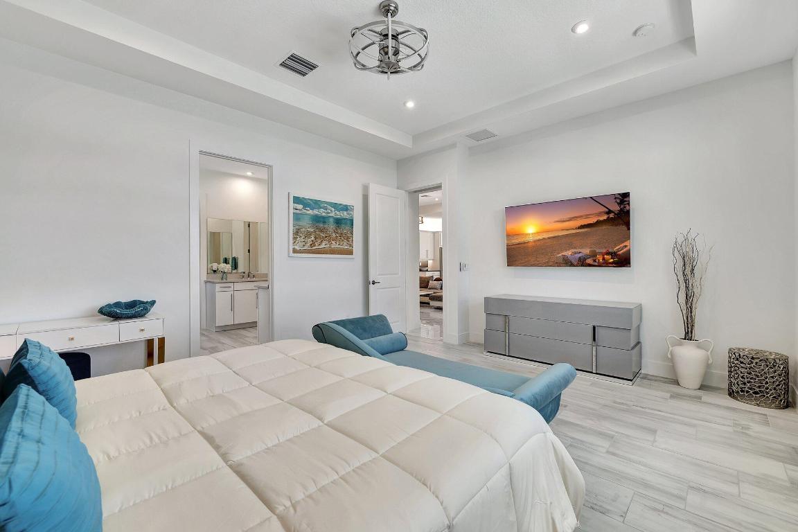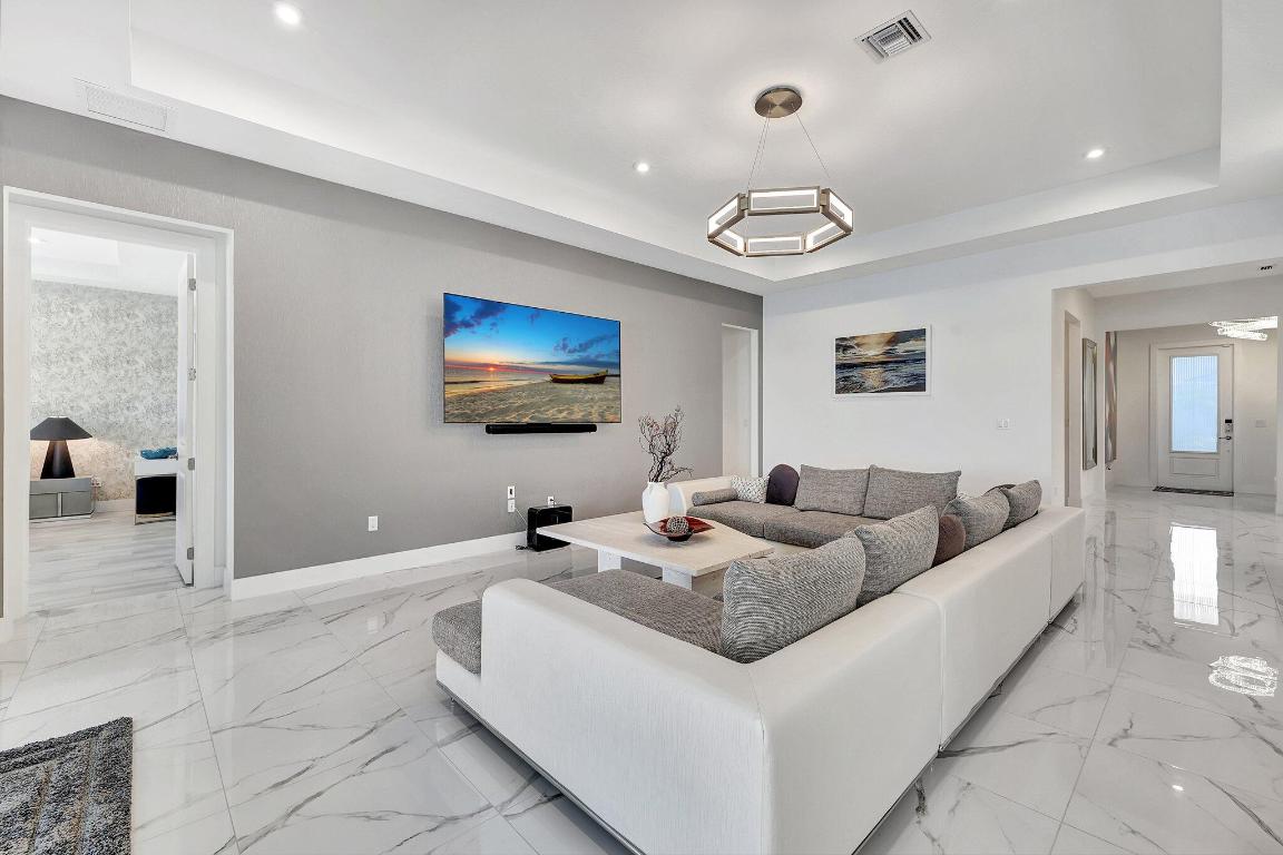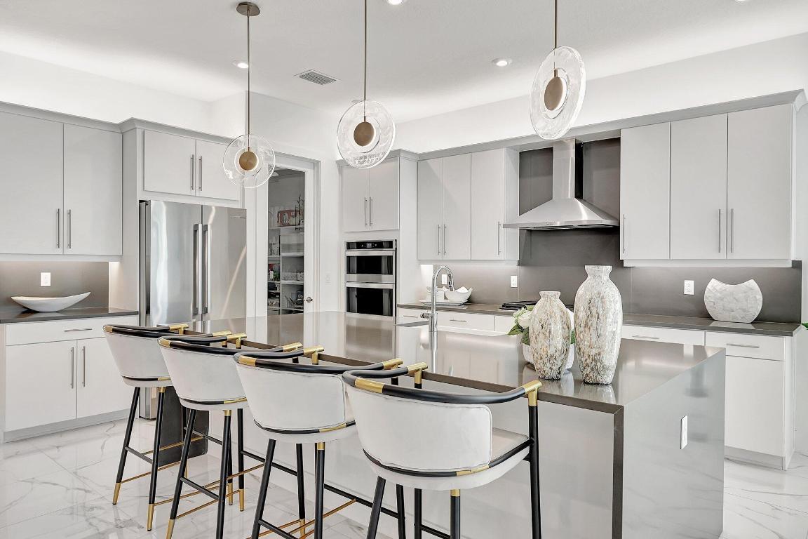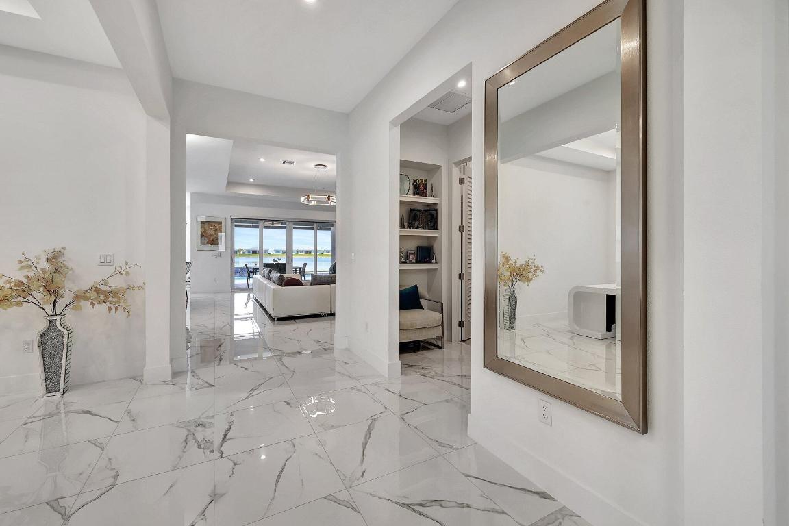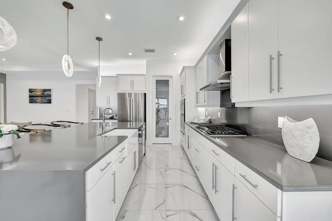 Stunning Estate Home Boast Lake Views With Spectacular Sunsets...VIEW, VIEW, VIEW!! - Walking distance to Luxury 55 Lifestyle Club House opening soon. (Temp Amenities Open Now) Home Features 3 Bed/ 3 Bath/Flex Room/3 Car Gar. Custom Upgraded shelves in pantry and closets, Gourmet Kitchen with High-end Bosch refrigerator, dishwasher, quartz countertops and backsplash, oversized island, open-concept dining room/ living area, Designer style Porcelain floors and accent walls. Modern Form specialty lighting, fans, designer shades, and window treatments, Outdoor Oasis Covered lanai, custom heated and chilled salt pool, with picture screen closure, soothing waterfall, ultimate in luxury! Telaro -gated entry, pool, cafe' card clubs, golf clubs, cooking clubs, pickle-ball, tennis and more! Telaro HOA includes so much to make your 55 Active Lifestyle easy. Included are GATED ENTRY, ALARM, CABLE, INTERNET, FULL LAWN CARE AND FULL ACCESS TO RESORT CLUB HOUSE. Telaro at Traditions is setting the bar high for Port St Lucie with midsize, man-gated 55 Resort Luxury Active Adult Community with a Activities Director on site and brand new club house opening soon, with many clubs and events already on schedule with temporary club house operating now. The high end Amenities include Tennis, Pickle-ball, Specialty Fitness Center, Assortment of Fitness Classes, Water Fitness Classes, Cooking Classes, Gardening, Cards, Golf Clubs, Dance Clubs, Wine Clubs, Travel Clubs and much, much more...