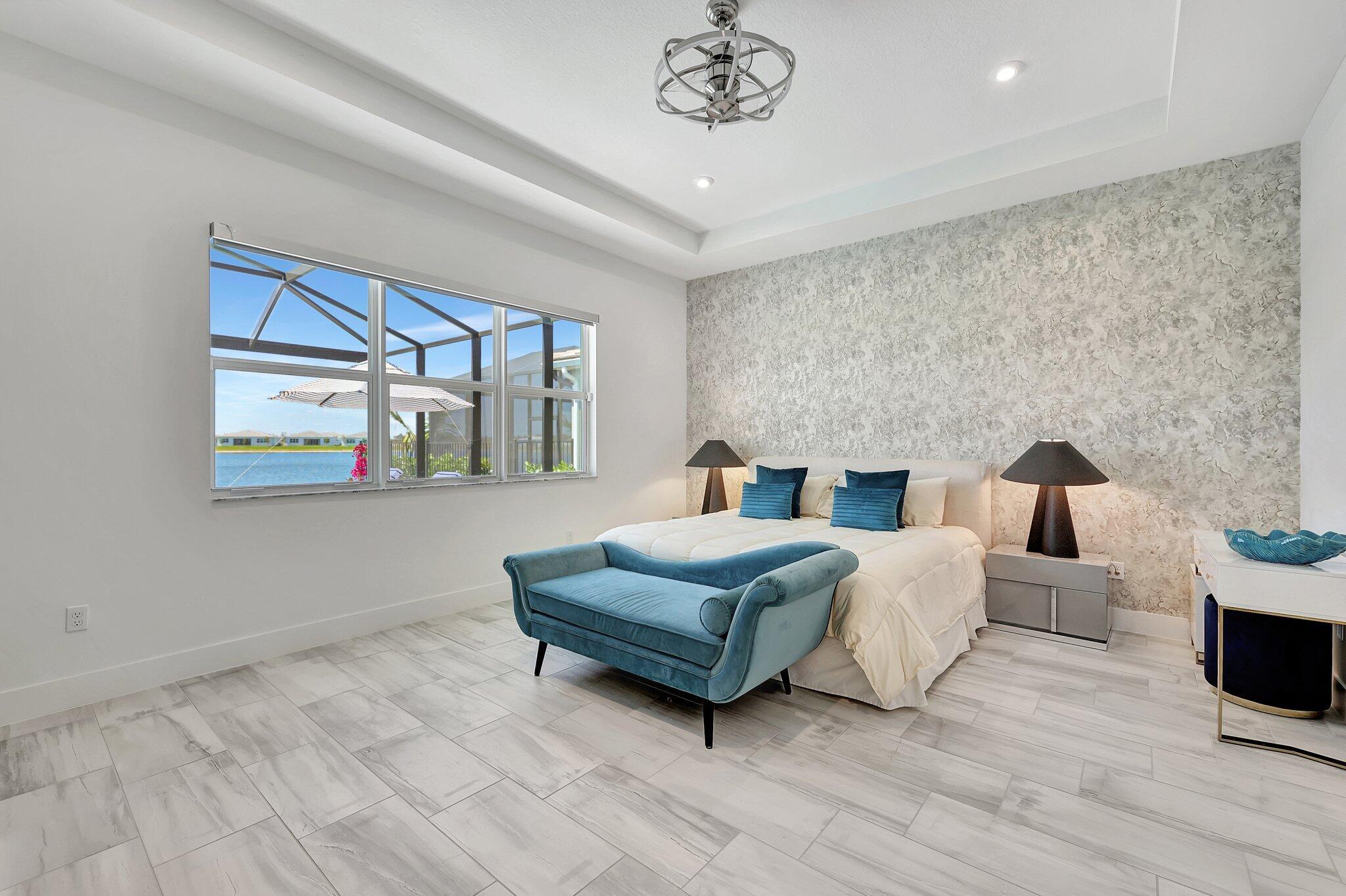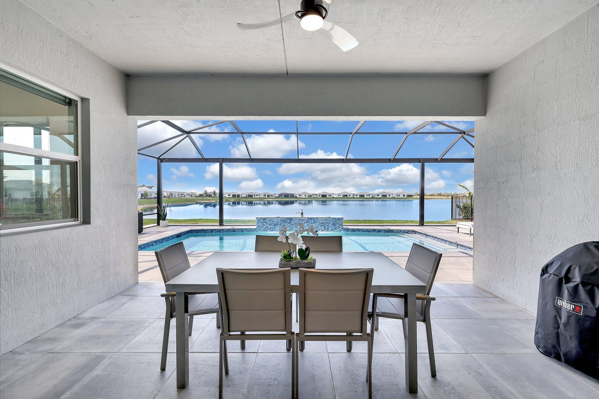 Stunning Estate Home Boast Lake Views With Spectacular Sunsets...VIEW, VIEW, VIEW!! - Walking distance to Luxury 55 Lifestyle Club House opening soon. (Temp Amenities Open Now) Home Features 3 Bed/ 3 Bath/Flex Room/3 Car Gar. Custom Upgraded shelves in pantry and closets, Gourmet Kitchen with High-end Bosch refrigerator, dishwasher, quartz countertops and backsplash, oversized island, open-concept dining room/ living area, Designer style Porcelain floors and accent walls. Modern Form specialty lighting, fans, designer shades, and window treatments, Outdoor Oasis Covered lanai, custom heated and chilled salt pool, with picture screen closure, soothing waterfall, ultimate in luxury! Telaro -gated entry, pool, cafe' card clubs, golf clubs, cooking clubs, pickle-ball, tennis and more!